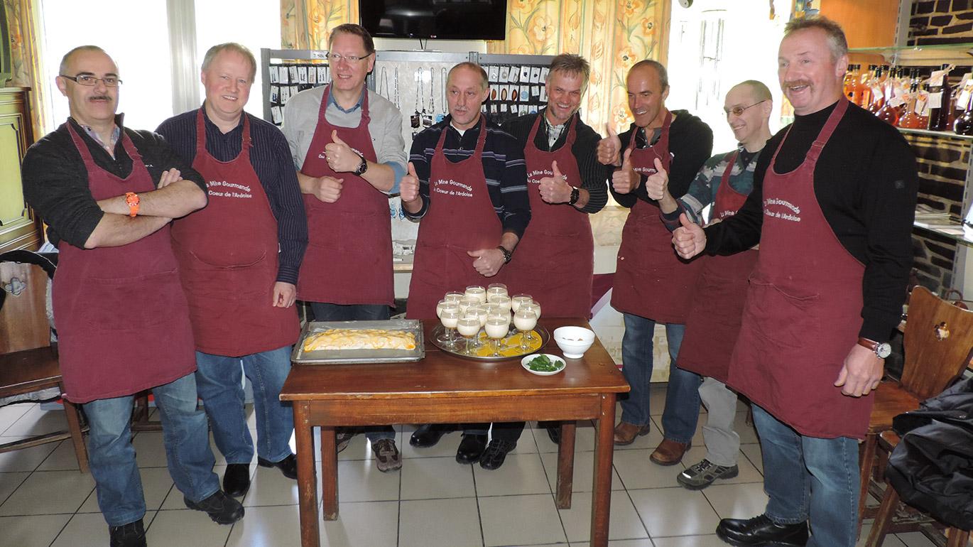 Au Coeur de l'Ardoise a ainsi imaginé une visite sous forme de balade gourmande qui permet de découvrir la mine souterraine tout en s'arrêtant à différents endroits pour déguster un apéritif, une entrée puis un plat principal. Celui-ci est toujours composé de canadas aux rousses, traditionnel repas ardennais fait de lard et de pommes de terre. Cette formule, appelée "La Mine gourmande" est proposée tous les dimanches midis pour les familles et les particuliers. Elle s'organise à la demande, mais toujours sur réservation, pour les groupes de minimum 10 personnes.