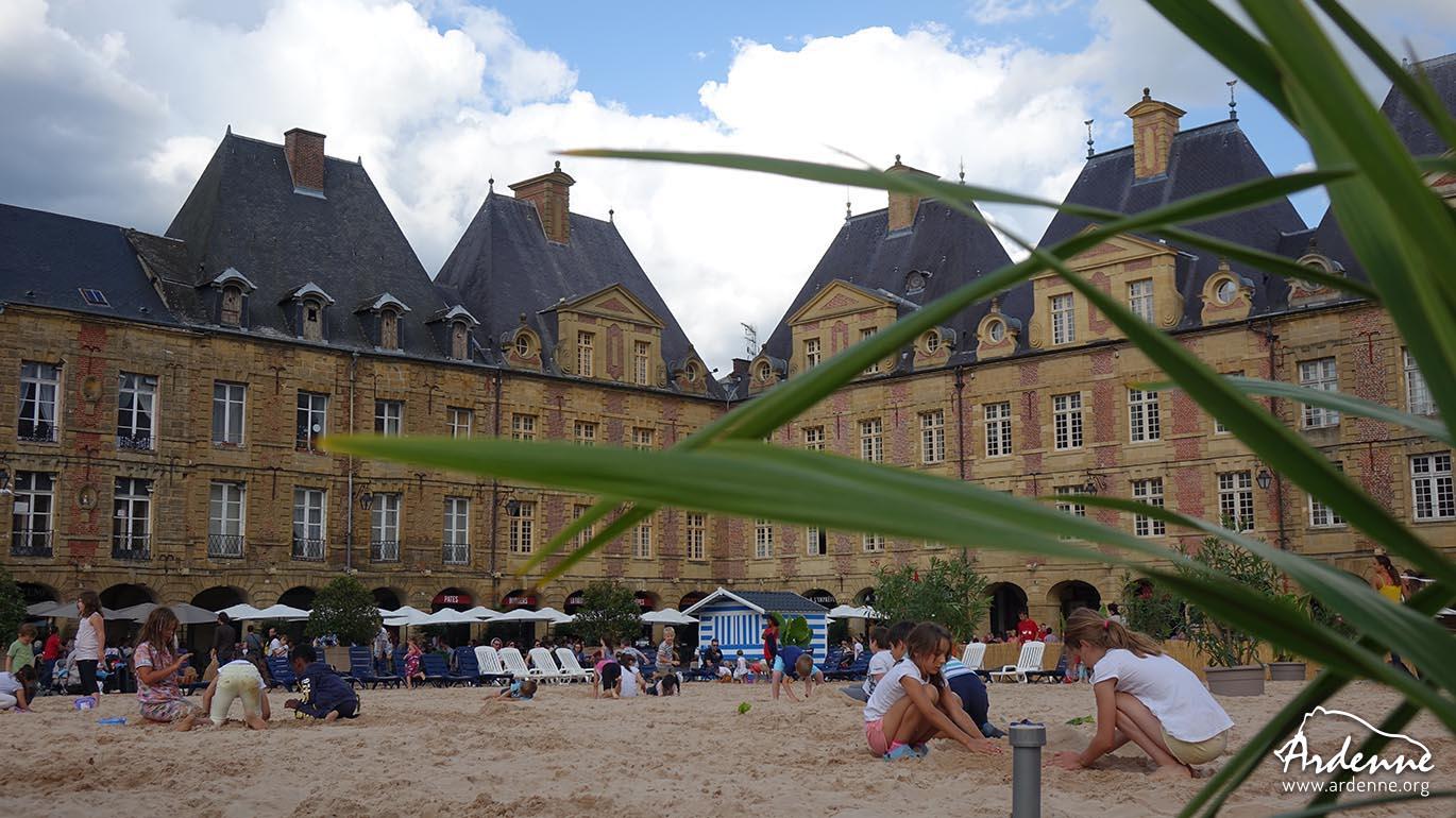 La Place Ducale est une magnifique place historique, construite en 1606 et bordée d'arcades. Pour l'occasion, son centre est découpé en plusieurs zones. Vous y trouverez une plage de sable bien sûr avec transats, matériel de plage & coin lecture; des terrains de beach volley, badmington, beach soccer; des tables de tennis; un mini-golf, etc.