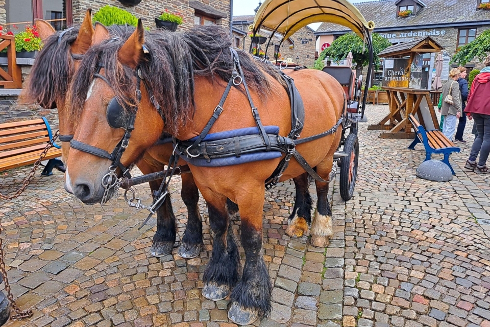 Quoi de plus sympa qu'ue petite balade en calèche tirée par deux beaux ardennais.