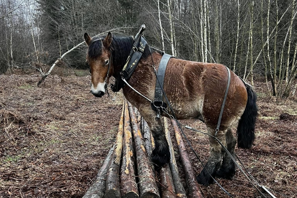 Débardage en forêt. Plus respectueux que les gros engins actuels.