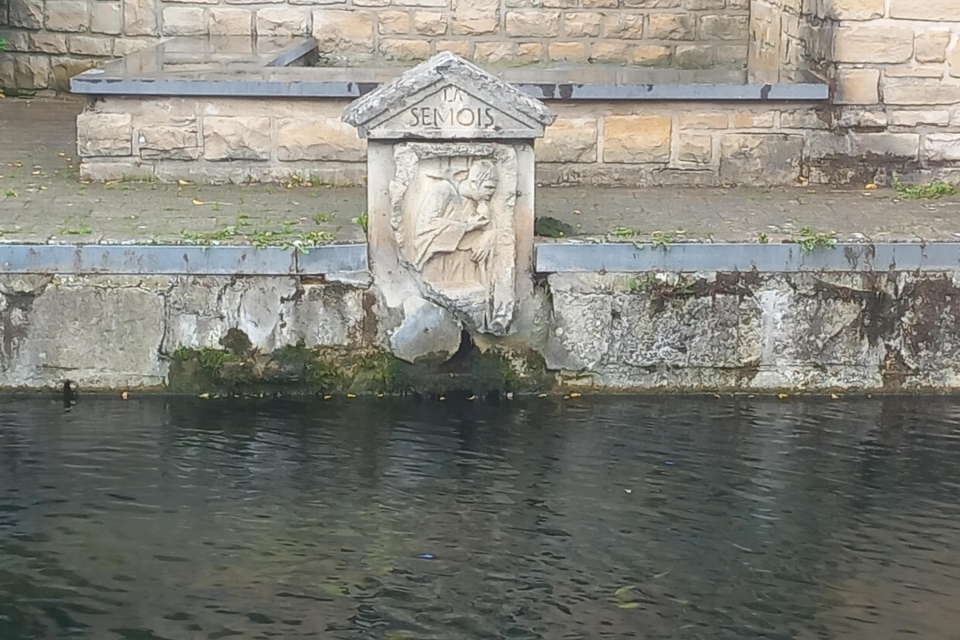 L’inauguration de l’aménagement des sources de la Semois par la Ville d’Arlon a lieu en 1972. Bien qu’aucun vestige d’époque romaine n’ait été découvert jusqu’à présent à cet endroit, la copie d’un fragment du monument romain, représentant un personnage en train de boire, a été disposée entre les deux bassins pour rappeler l’importance de l’eau, des sources et des rivières depuis l’Antiquité.